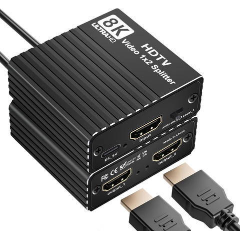 Xput 8K 1x2 HDMI 2,1 Splitter Pantalla de monitor dual HDMI 2,3 Splitter para Xbox PS4 Divisores y convertidores de Video 1 en 2 salidas