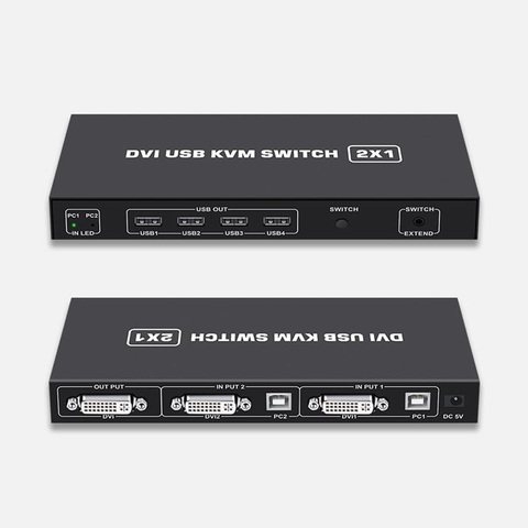 Xput 4K DVI USB KVM Switch 2x1 La Pantalla de conmutación multifunción dos en uno permite que dos computadoras compartan el Monitor de Impresión del teclado USB
